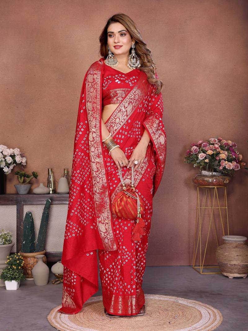 | Product Name | Maroon Bandhej Art Silk Blend Saree With Zari Weaving Work | |