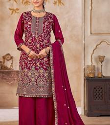 Maroon vichitra silk readymade plazzo suit with embroidery & lace work stitched