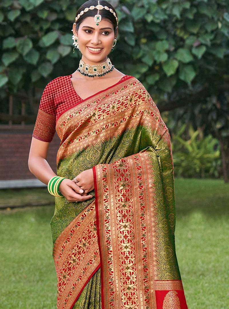 | • | Saree | : | Color- Mehendi / Fabric- Banarasi Silk |