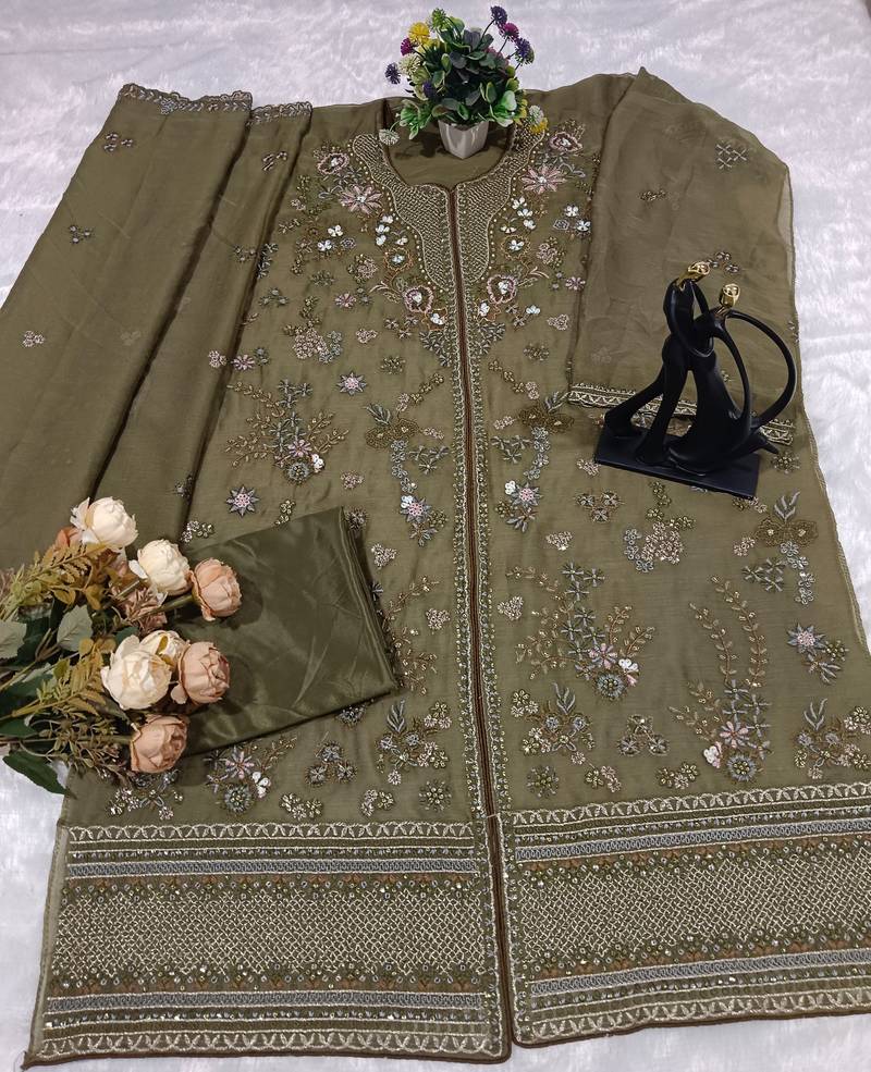 | Product Name | Mehendi Chiffon Semi Stitched Suit With Embroidery Work | |