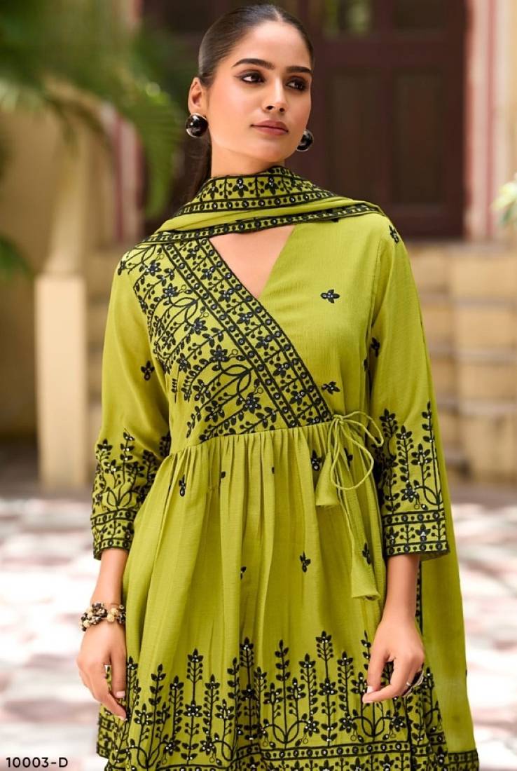 | Product Name | Mehendi Chinon Readymade Sharara Suit With Embroidery Work | |
