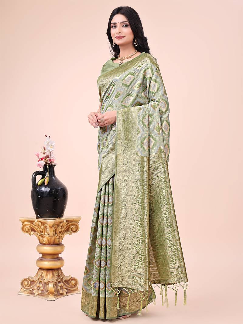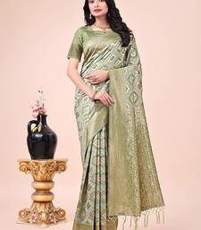 Mhendi green cotton fabric with with jacquard work and zari weaving saree with blouse