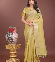 Mhendi green organza with thread work and zari weaving saree with blouse