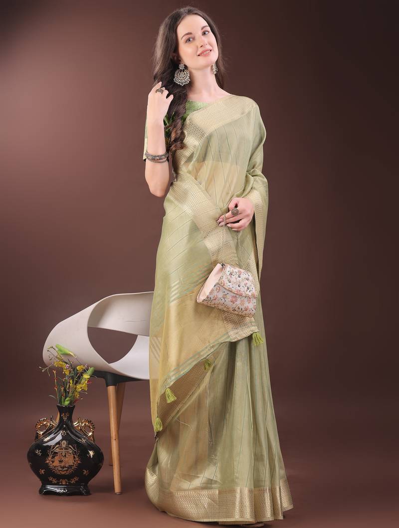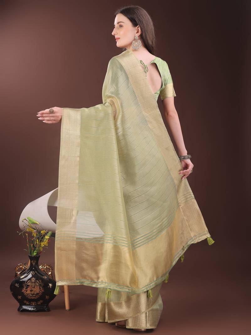| Product Name | Mint Green Organza With Thread Work And Zari Weaving Saree With Blouse | |