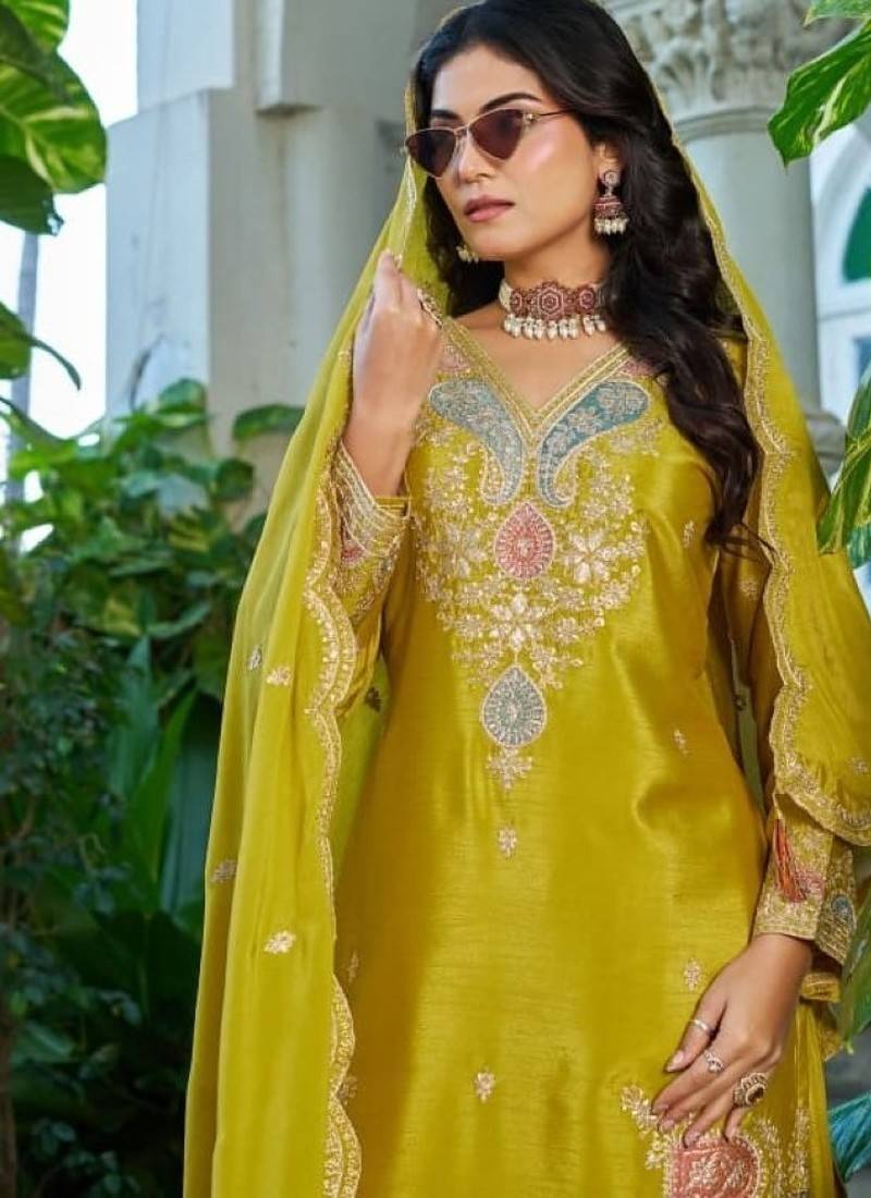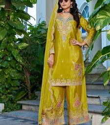 | Product Name | Mustard Chinon Free Size Stitched Plazzo Suit With Dhaga & Sequence Work | |