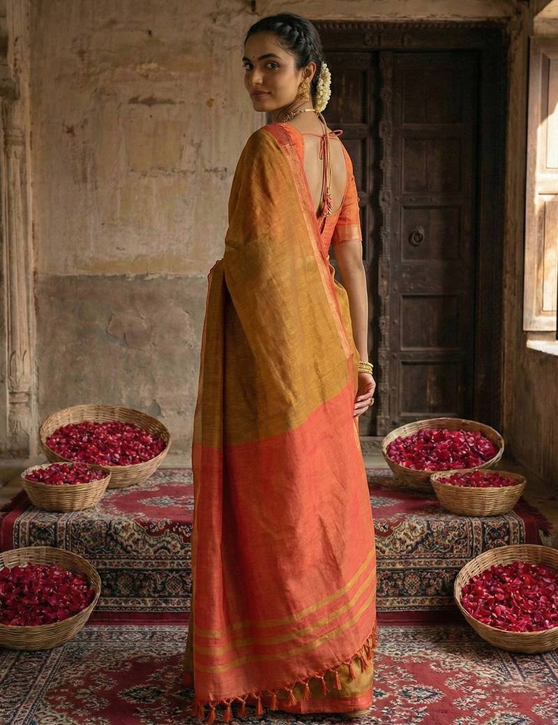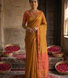 | • | Saree | : | Color- Mustard / Fabric- Cotton |