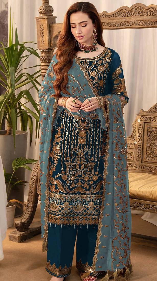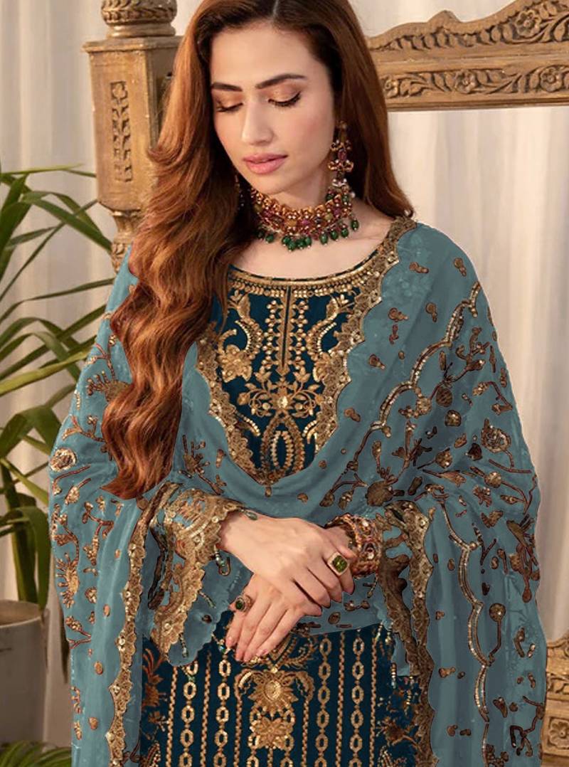 | • | Dupatta | : | Color- Light Teal / Fabric- Silk |