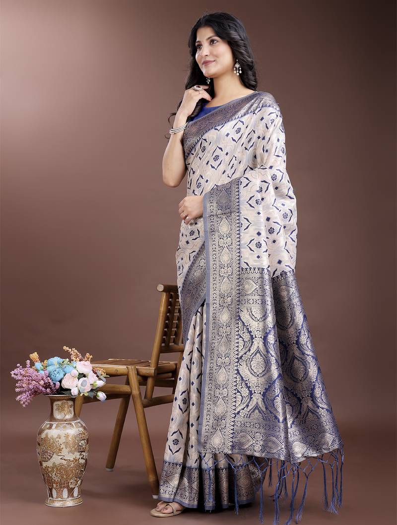| Product Name | Navy Blue Linen Cotton With Jacquard Work And Zari Weaving Saree With Blouse | |
