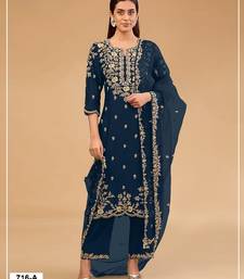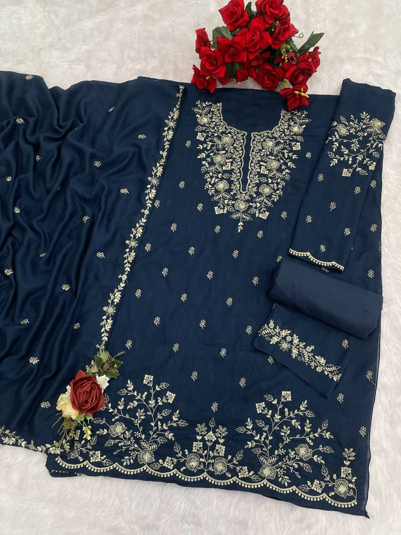 Navy vichitra semi stitched suit with embroidered & multi thread zari work