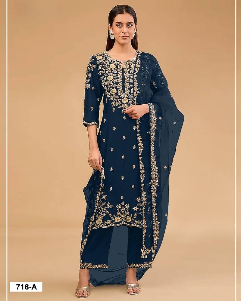 | Product Name | Navy Vichitra Semi Stitched Suit With Embroidered & Multi Thread Zari Work | |