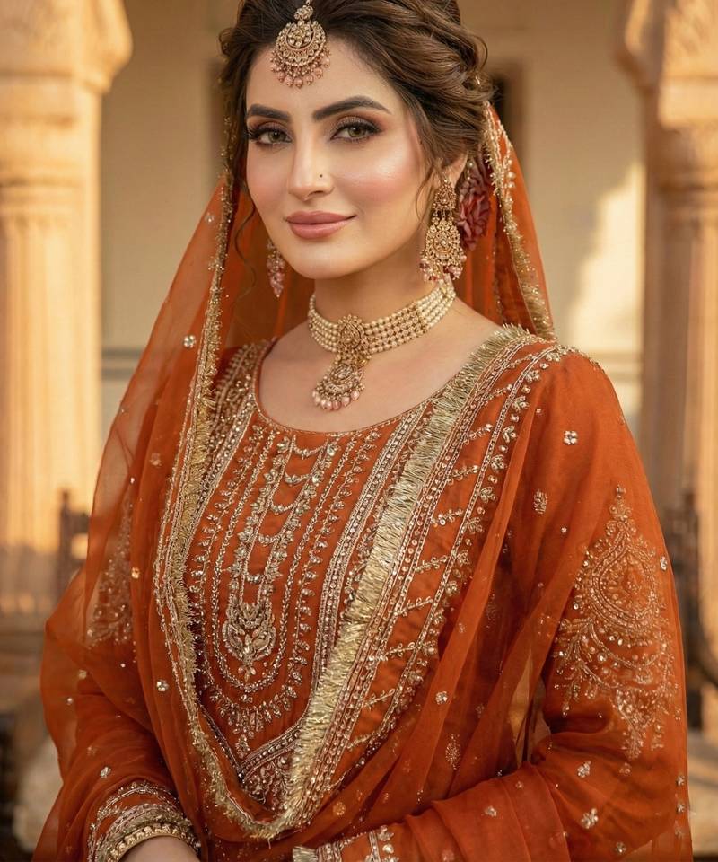 | • | Kameez | : | Color- Orange / Fabric- Georgette |