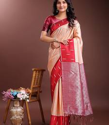 Orange lichi art silk with woven zari work saree with blouse
