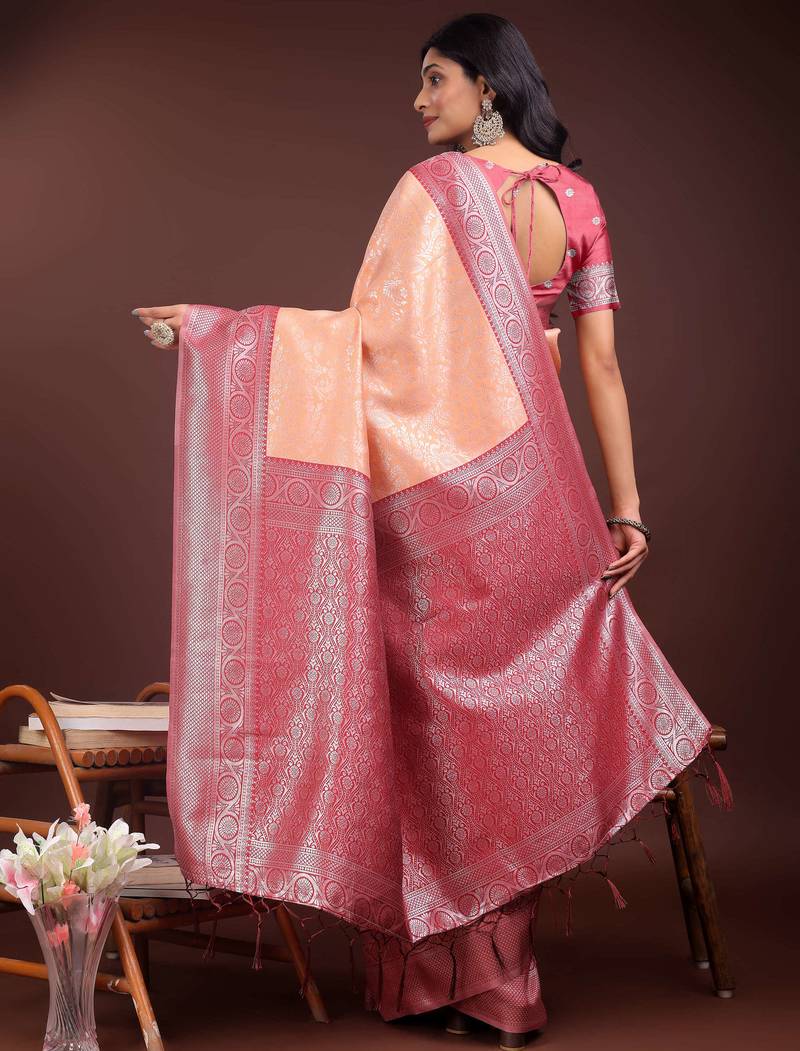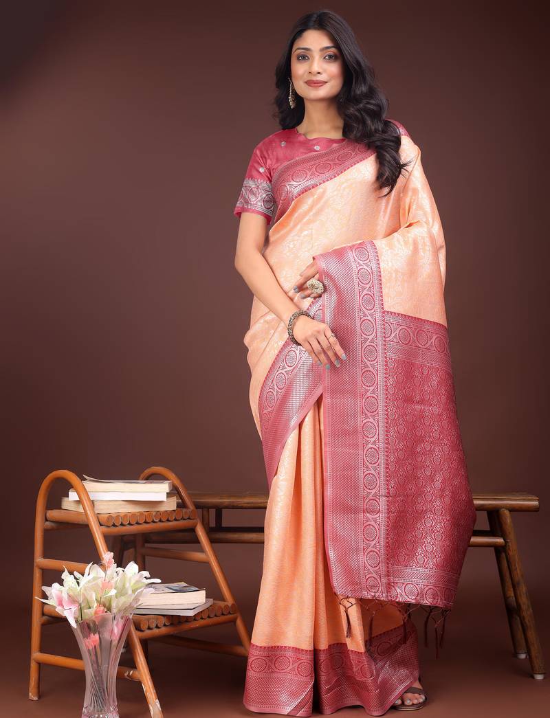Product Name Orange Lichi Art Silk With Woven Zari Work Saree With Blouse