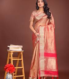 Orange organza with thread work and zari weaving saree with blouse