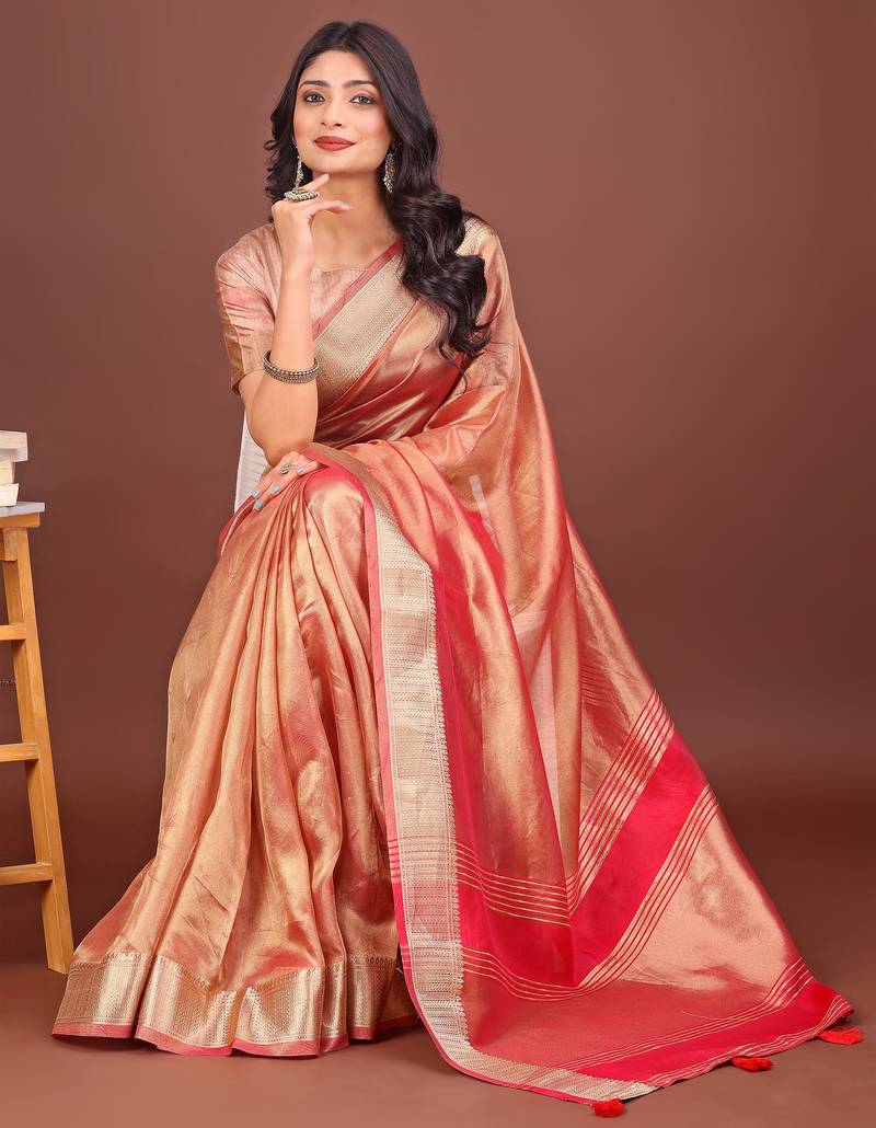 | Product Name | Orange Organza With Thread Work And Zari Weaving Saree With Blouse | |