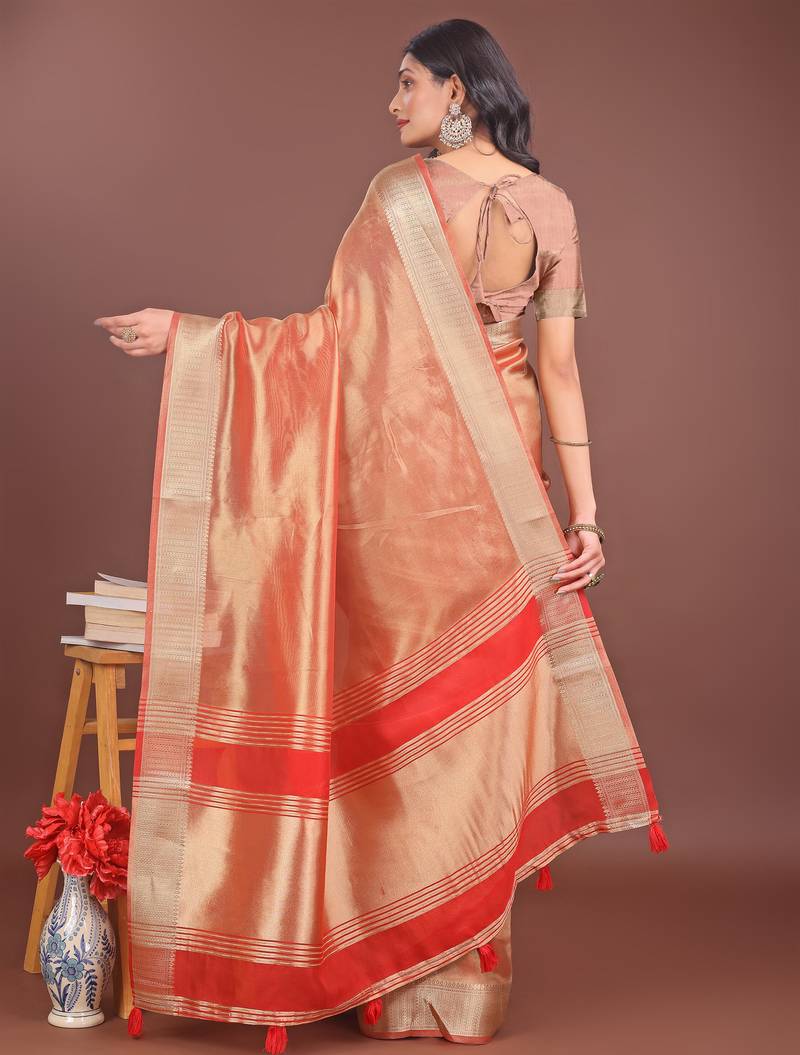 | Product Name | Orange Organza With Thread Work And Zari Weaving Saree With Blouse | |