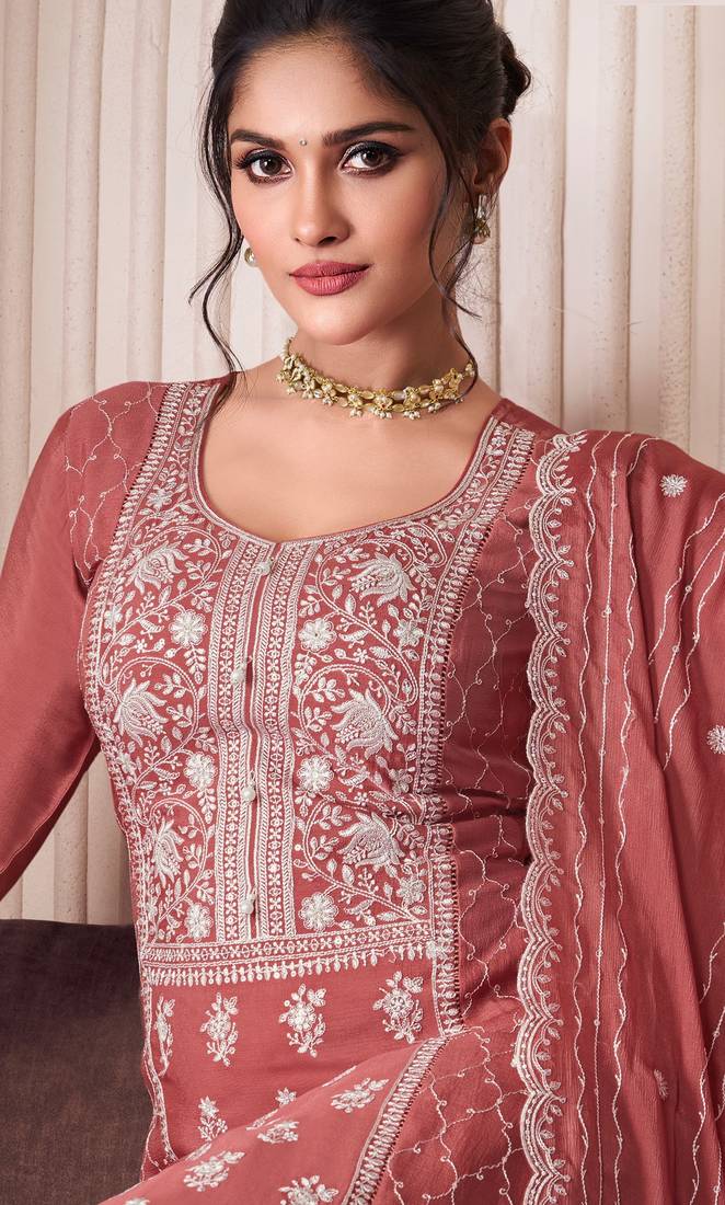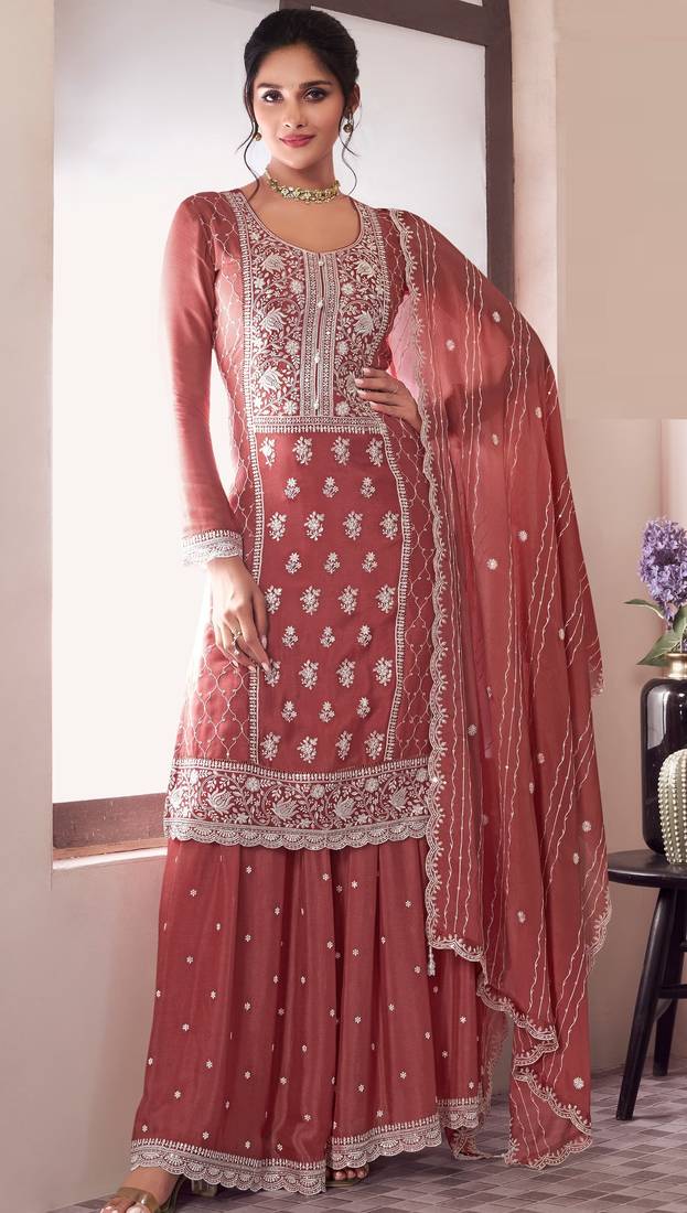 Product Name | Peach Embroderied Work Silk Sharara Suit | |
