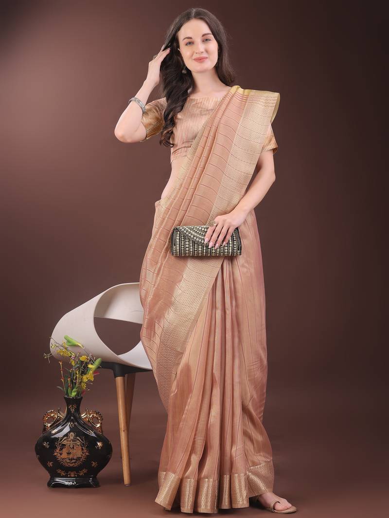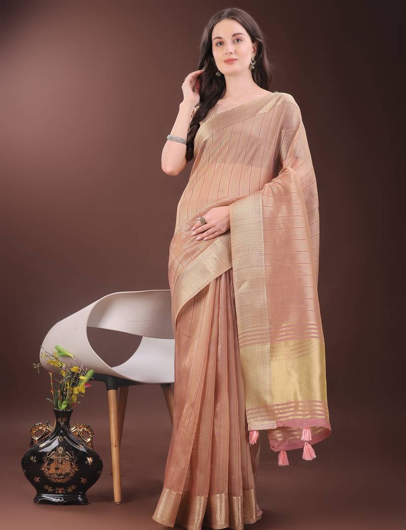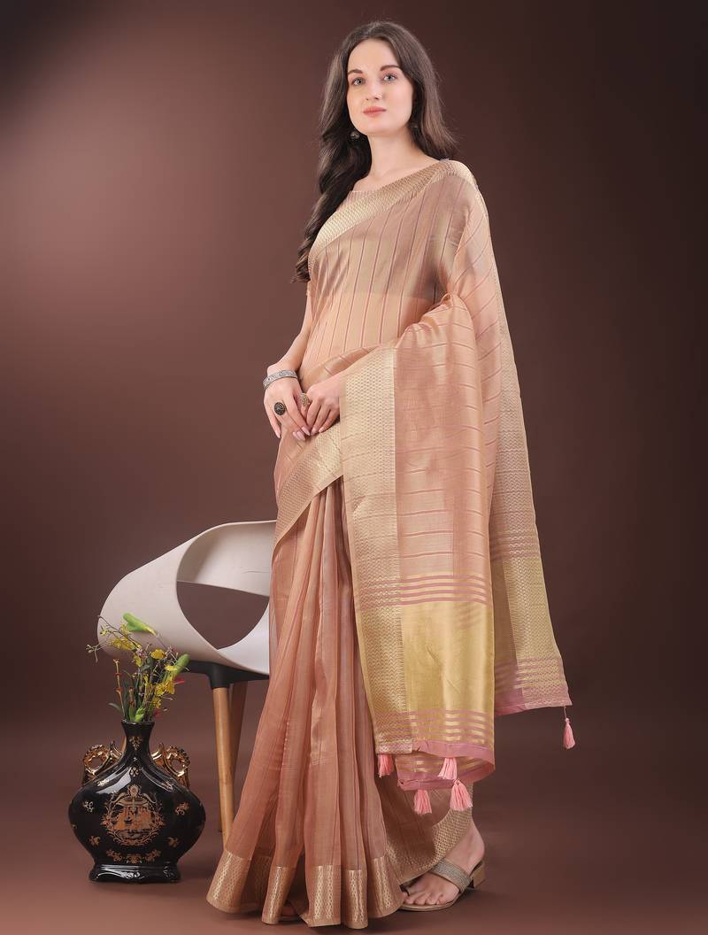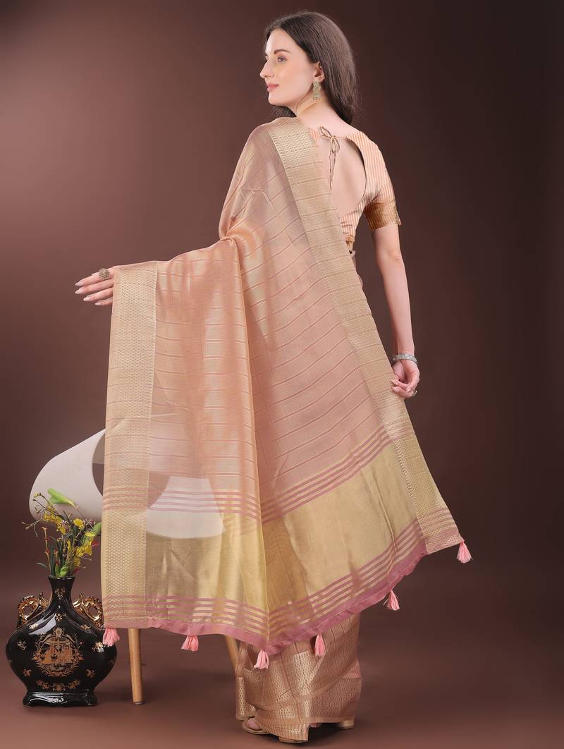 | Product Name | Peach Organza With Thread Work And Zari Weaving Saree With Blouse | |