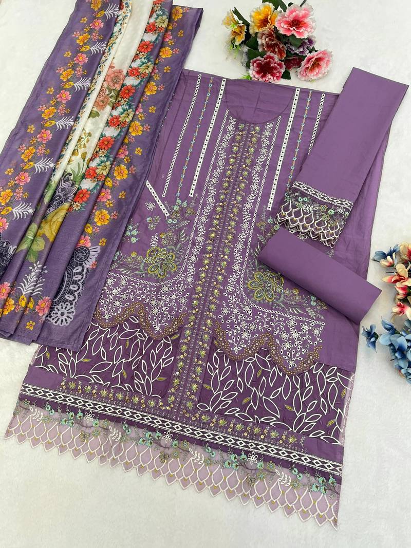 | Product Name | Purple Cambric Cotton Semi Stitched Suit With Embroidery & Khatli Work | |