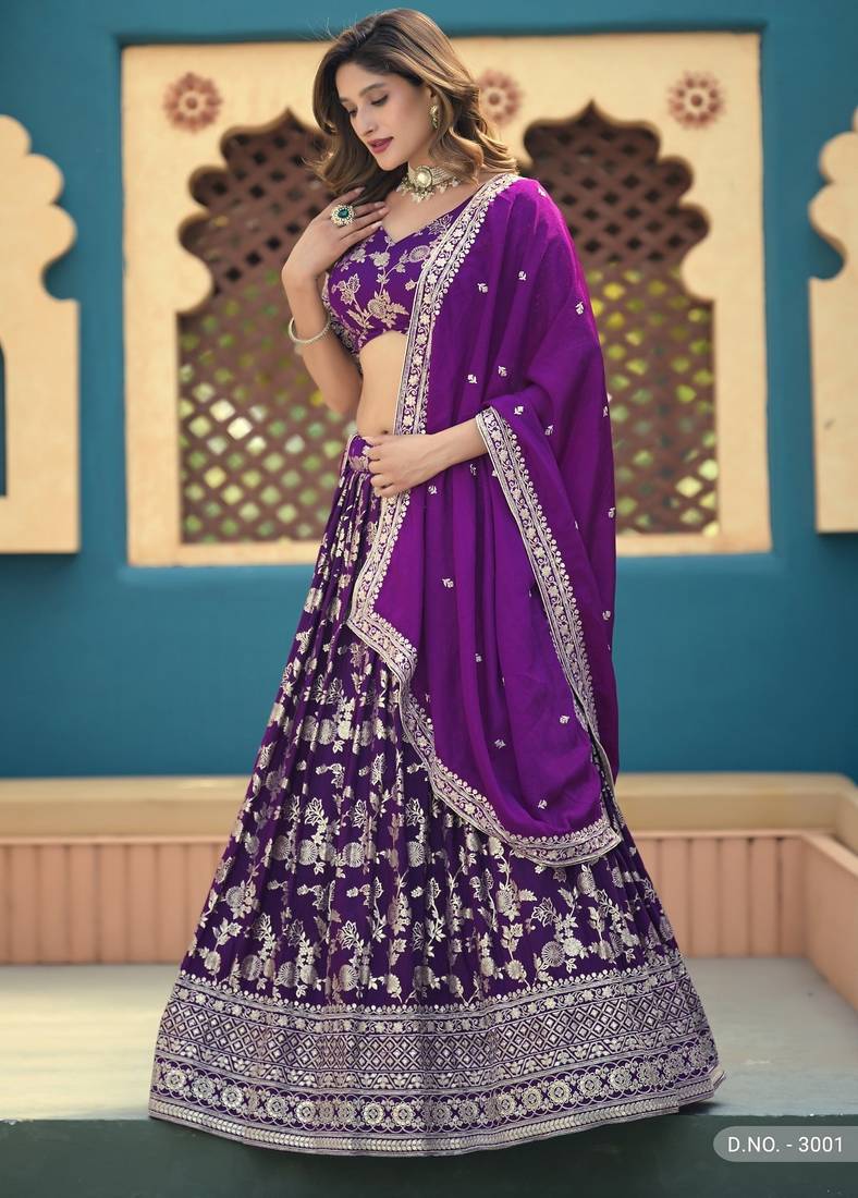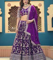 Purple dola silk semi stitched lehenga choli with heavy embroidery work
