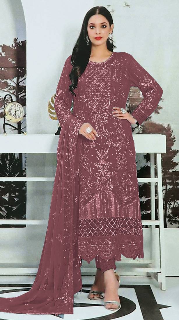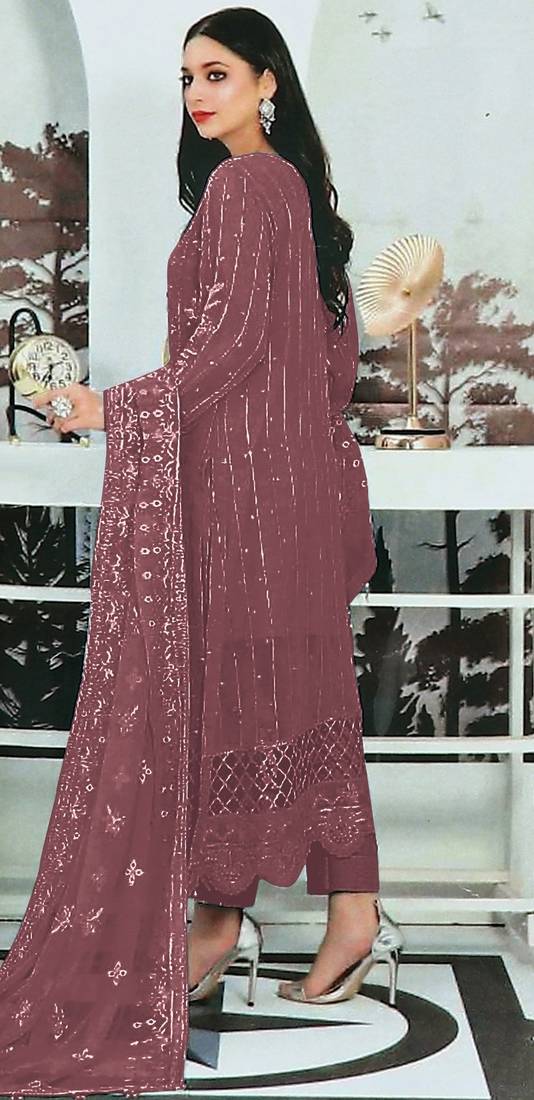 | • | Kameez | : | Color- Purple / Fabric- Faux Georgette |