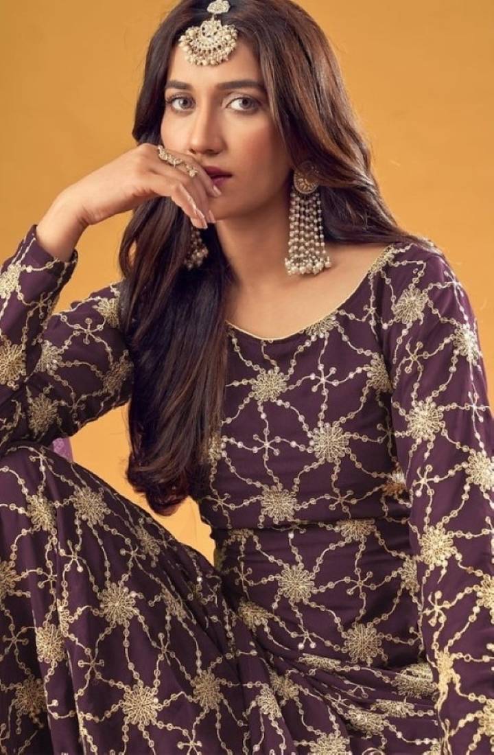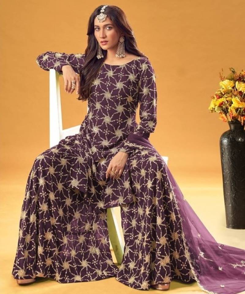 | Product Name | Purple Faux Georgette Embroidered Sequins & Mirror Work Palazzo Suit | |