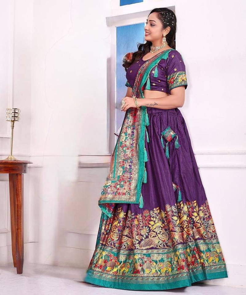 | Product Name | Purple Patola Print Dola Silk Lehenga Set With Choli And Dupatta With Tassels | |