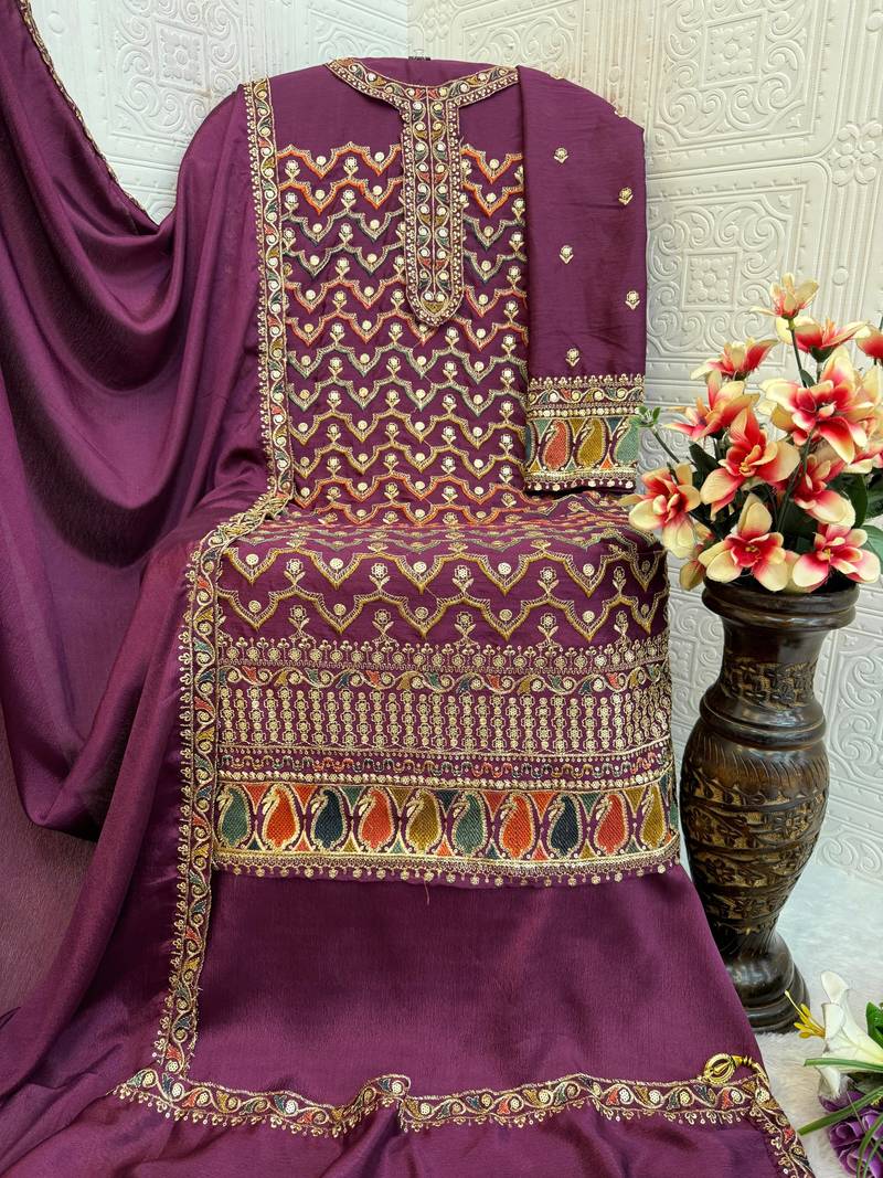 | Product Name | Purple Embroidered Chinon Salwar Suit | |