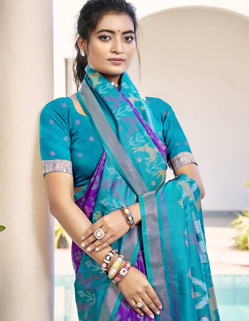 | • | Saree | : | Color- Purple / Fabric- Pochampally |