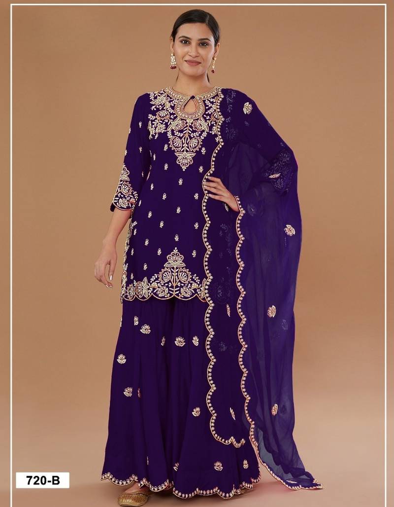 Product Name | Purple Vichitra Semi Stitched Suit With Embroidered Viscose Thread Jari & Sequence Work | |