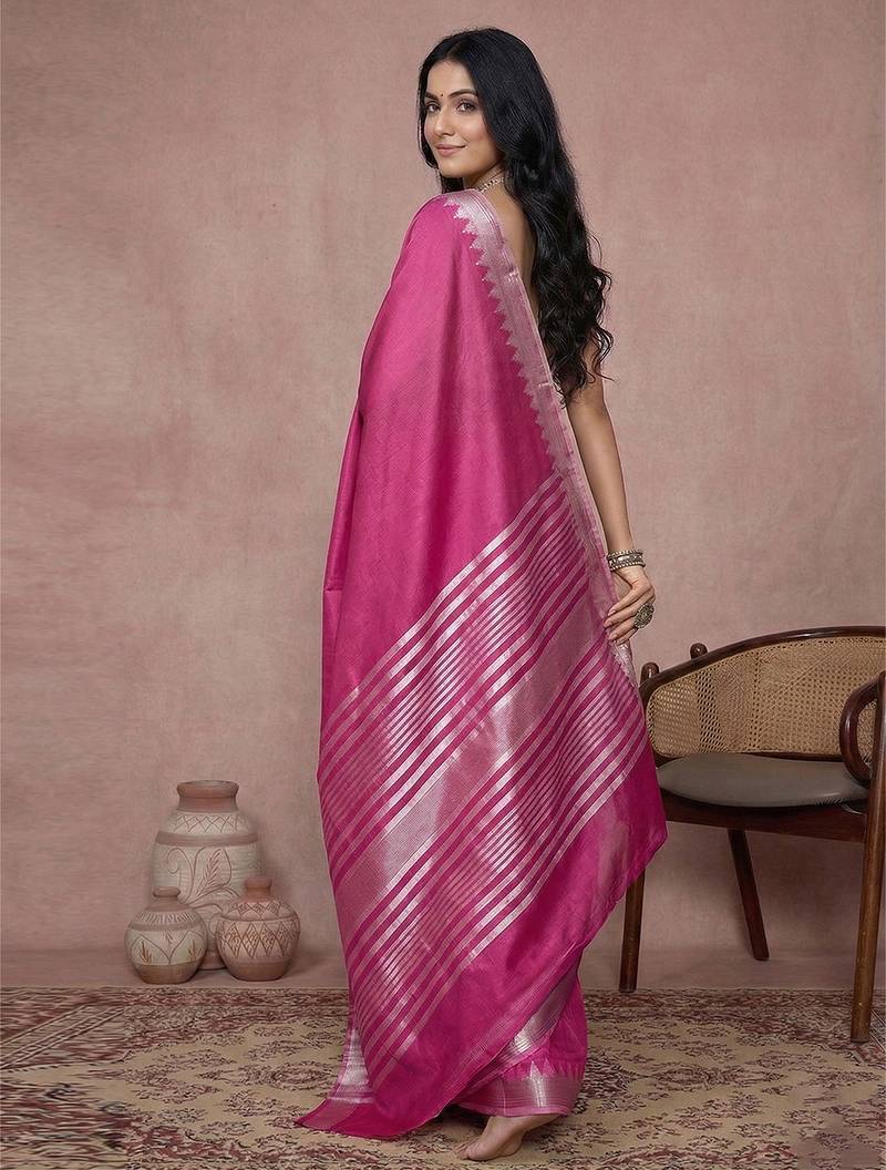 Saree : Color- Rani Pink / Fabric- Cotton