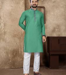 Rama green linen silk straight kurta