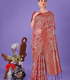 Red cotton with with jacquard work and zari weaving saree with blouse
