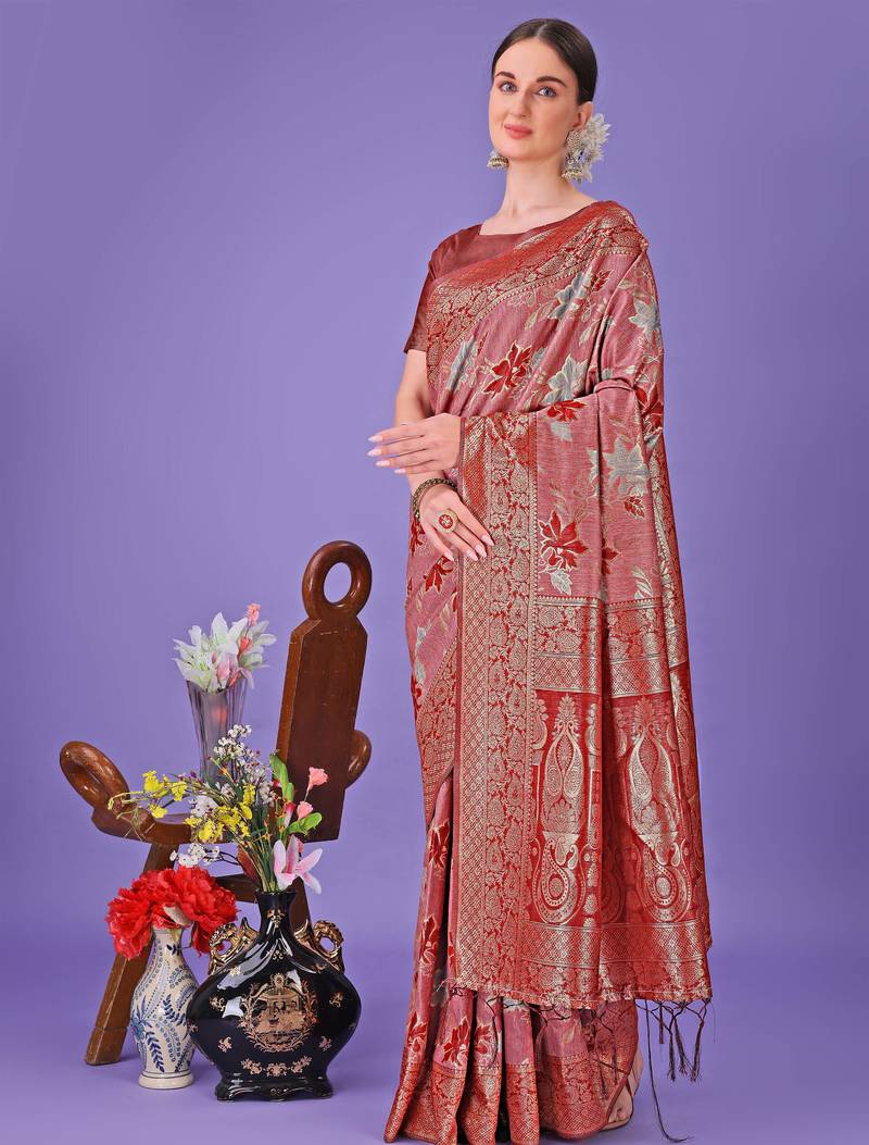 Product Name Red Cotton With With Jacquard Work And Zari Weaving Saree With Blouse