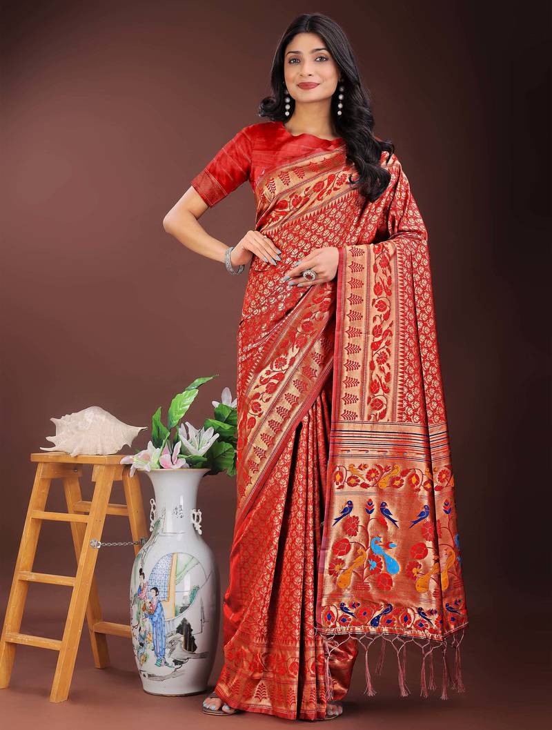 | Product Name | Red Art Silk Fabric With Jacquard Work And Zari Weaving Saree With Blouse | |