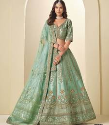 Sea green art silk semi stitched lehenga choli with heavy embroidery work