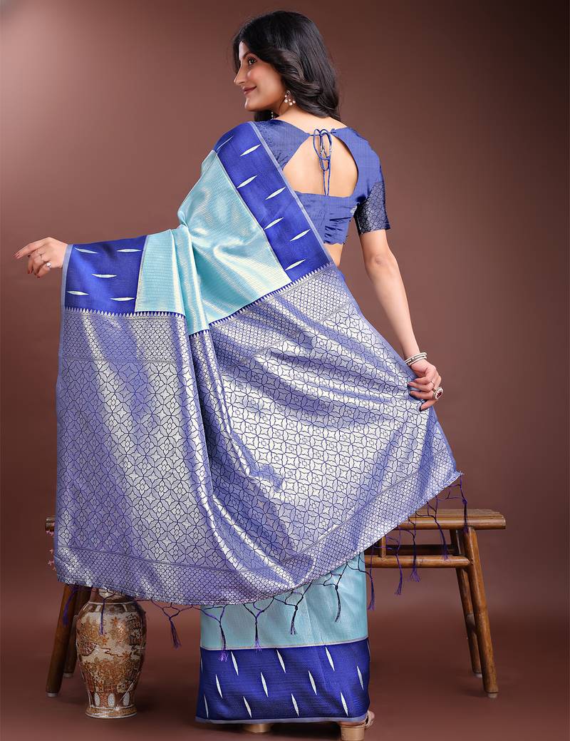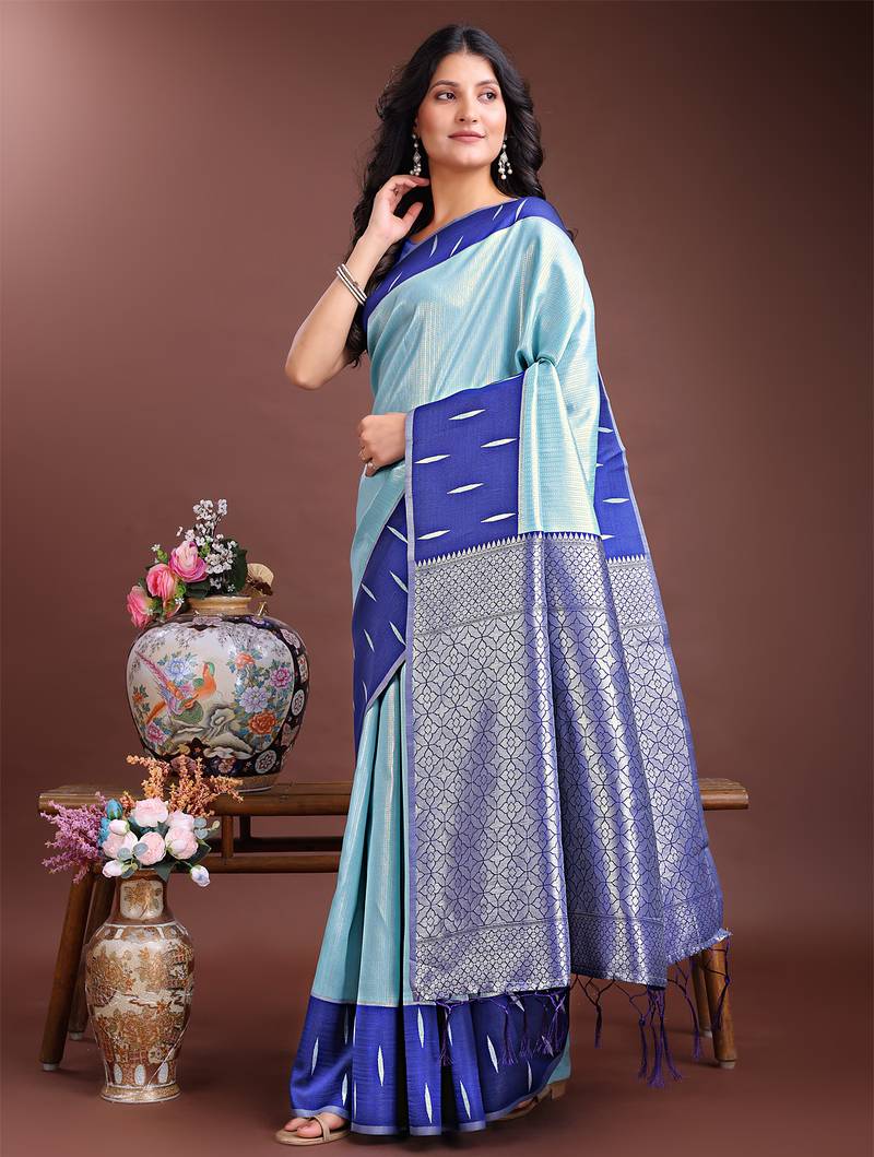 Sea green lichi art silk with woven zari work saree with blouse