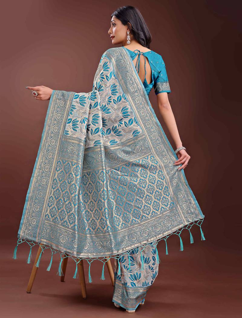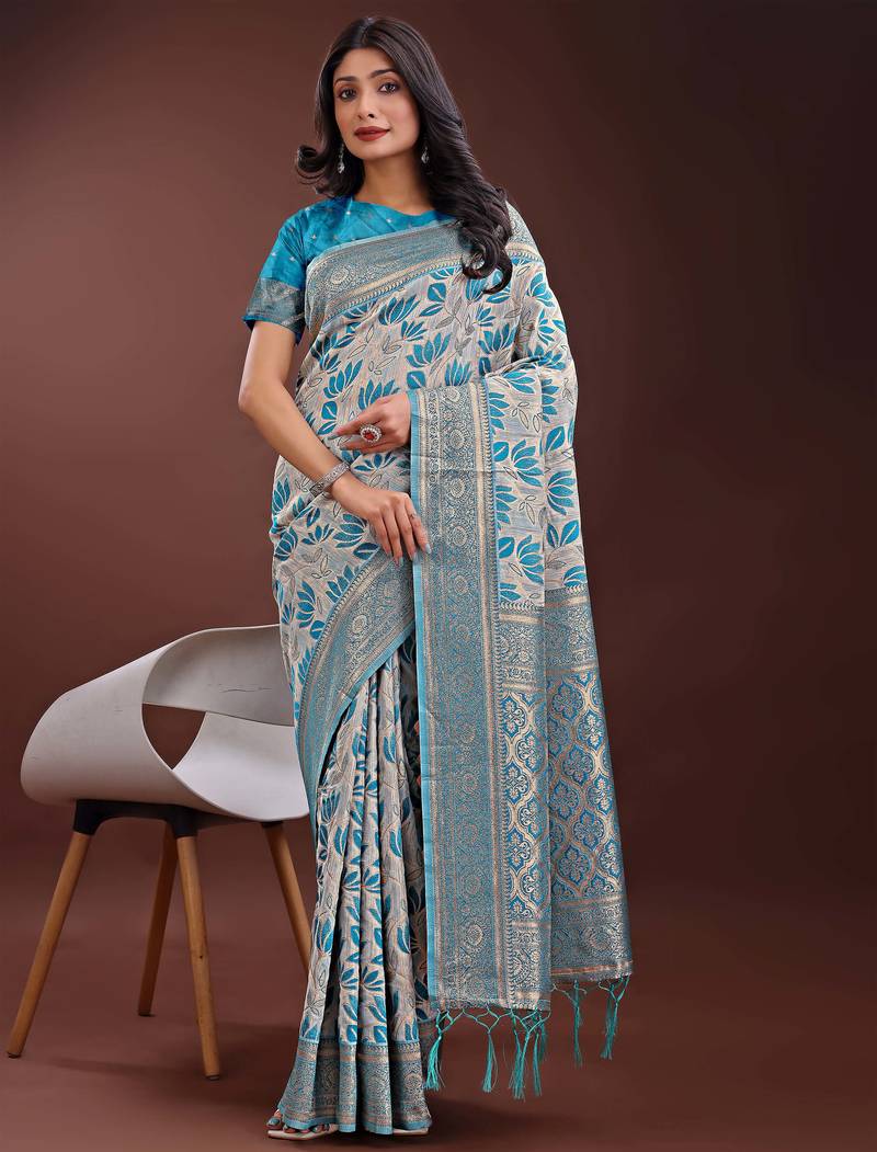 Product Name Sea Green Linen Cotton With Jacquard Work And Zari Weaving Saree With Blouse