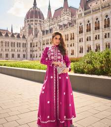 Silk free size stitched suit with embroidery work