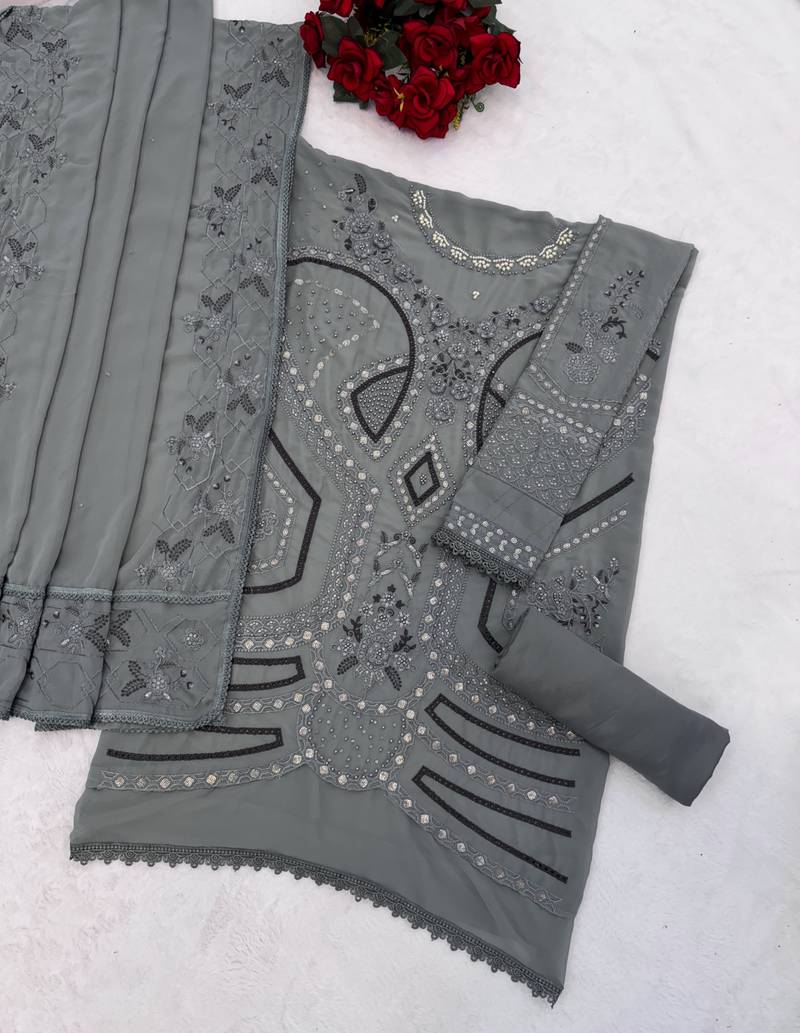 | Product Name | Sky Blue Georgette Semi Stitched Suit With Embroidery Sequence & Moti Work | |