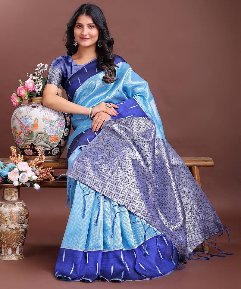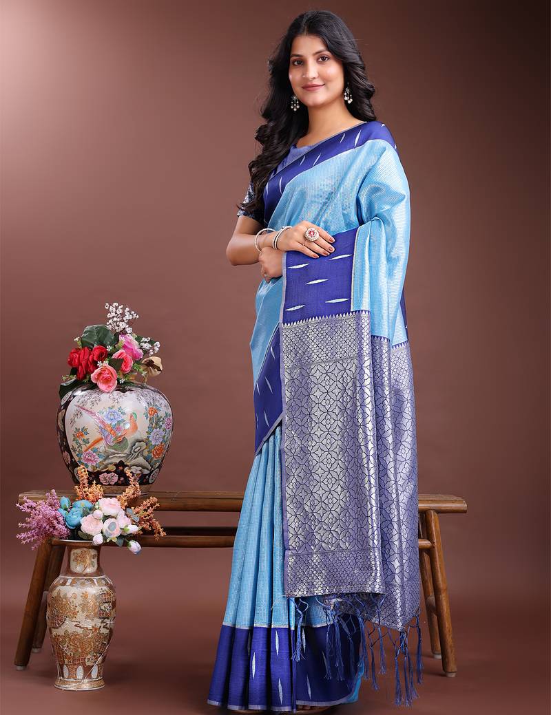 | Product Name | Sky Blue Lichi Art Silk With Woven Zari Work Saree With Blouse | |