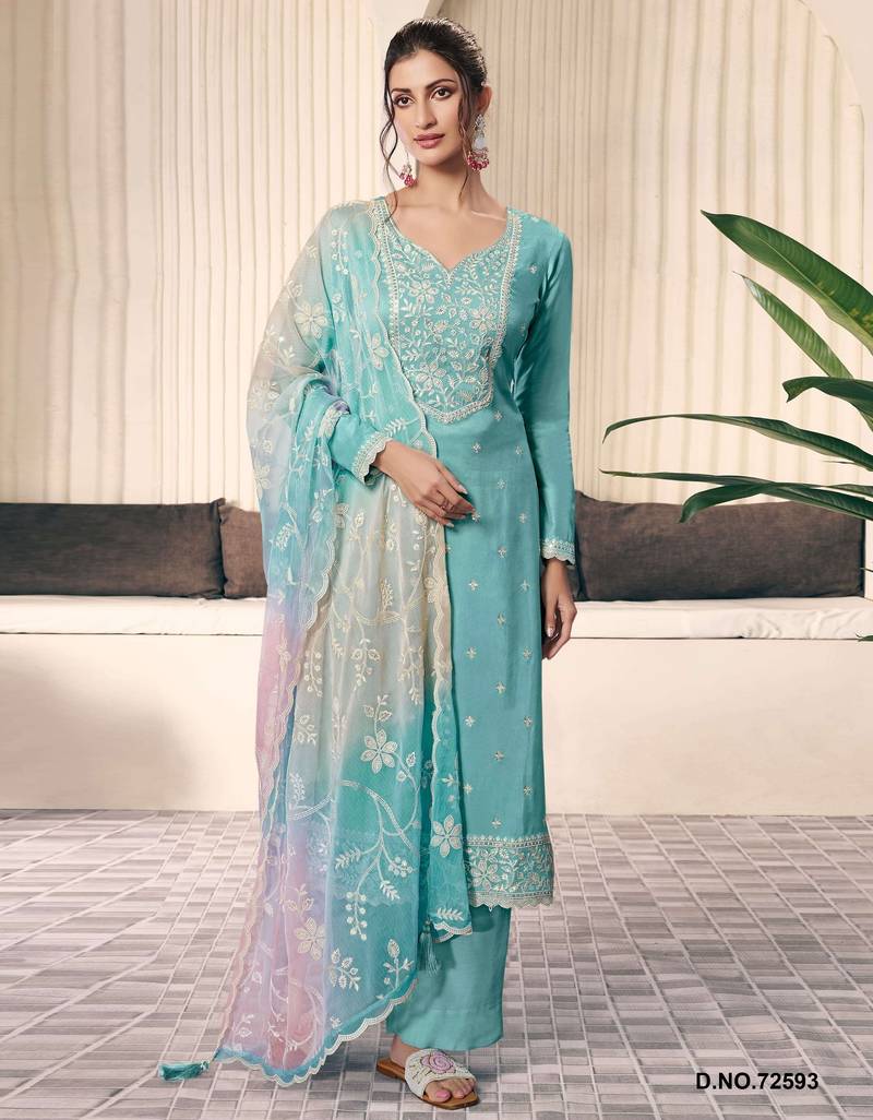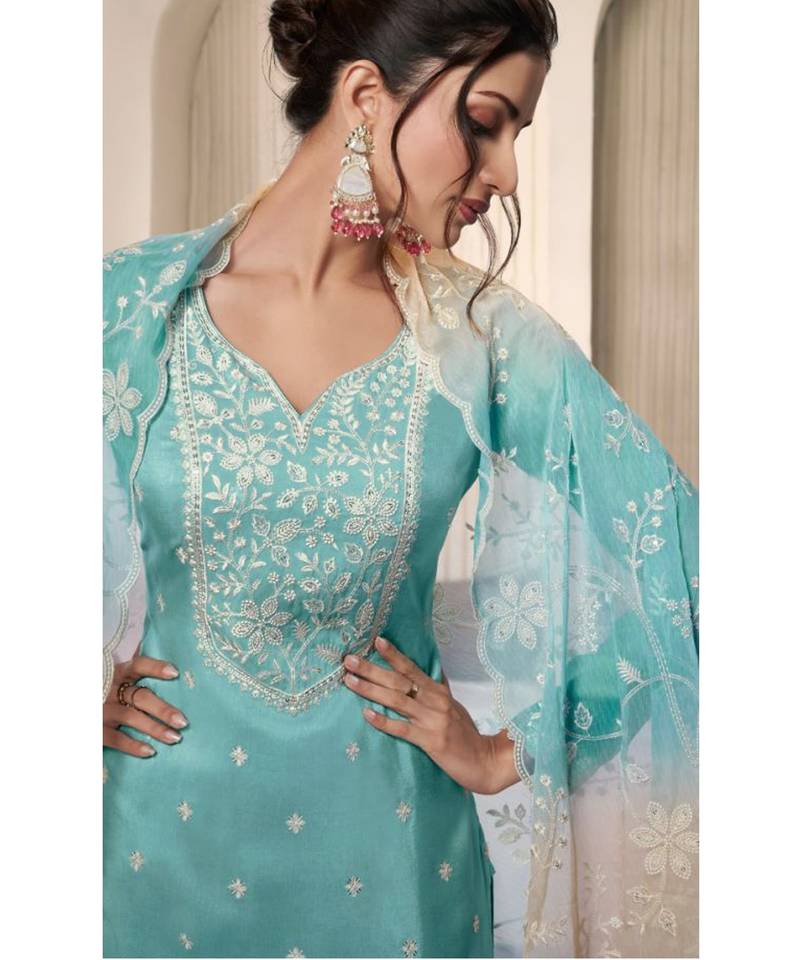• | Dupatta | : | Color- Sky Blue / Fabric- Chiffon |