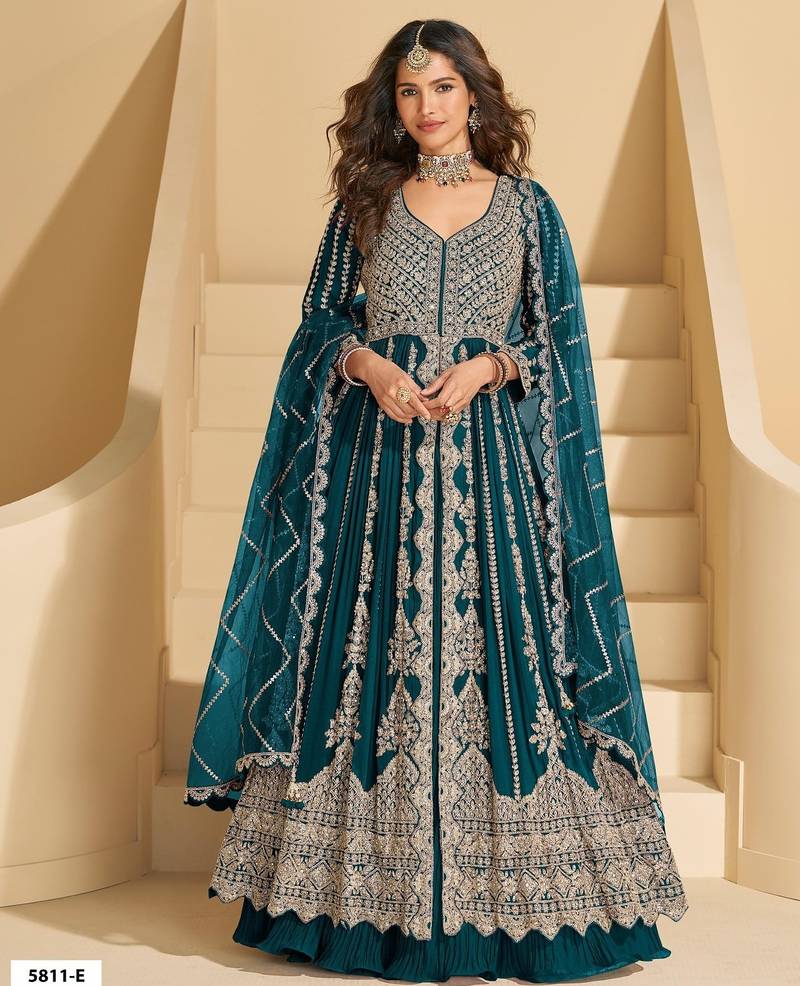 | Product Name | Teal Chinon Readymade Anarkali Lehenga With Heavy Embroidery Work Full Stitched Free Size | |