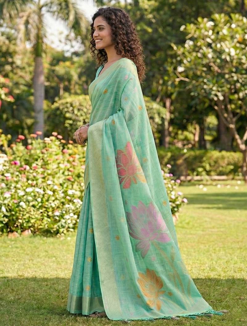 | Product Name | Turquoise Linen Saree With Blouse Piece | |