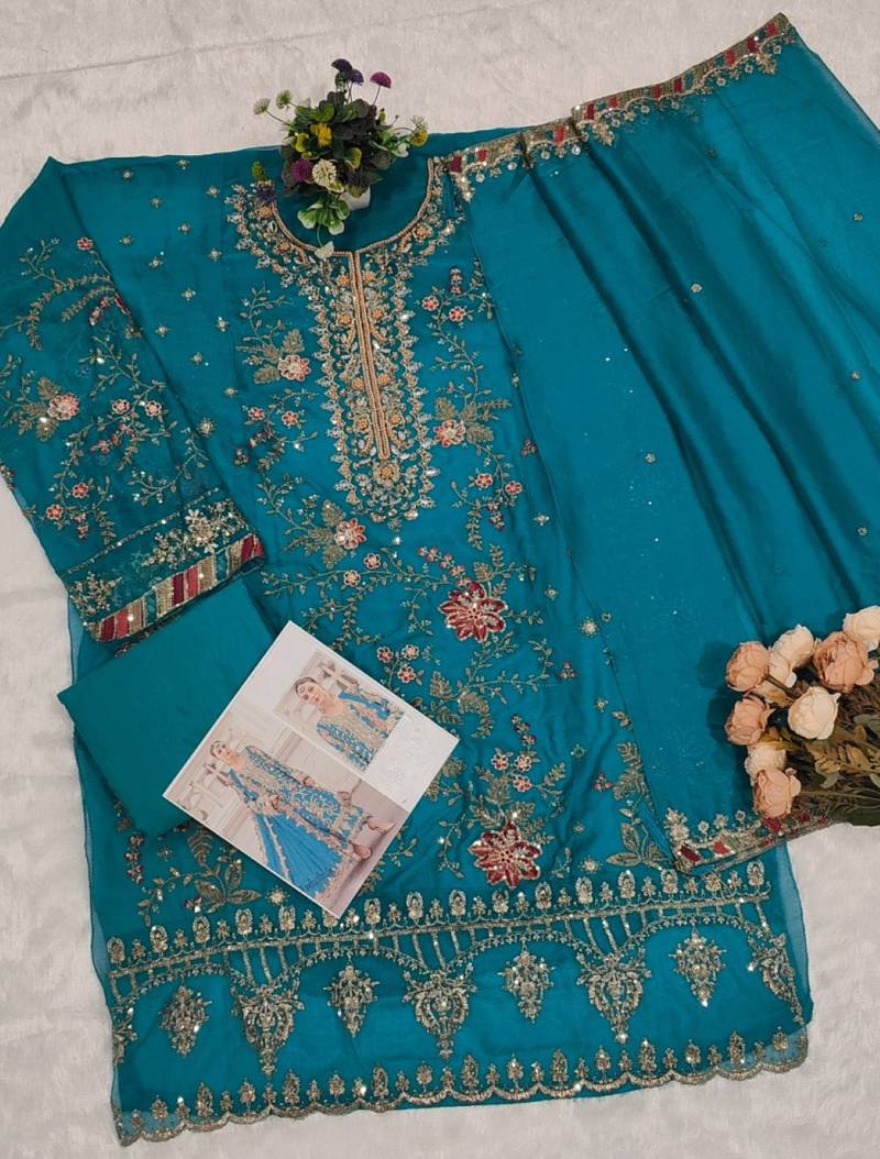 | Product Name | Turquoise Silk Suit With Embroidery & Sequin Work | |