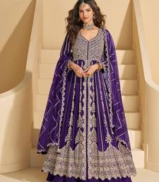 Violet chinon readymade anarkali lehenga with heavy embroidery work - full stitched free size