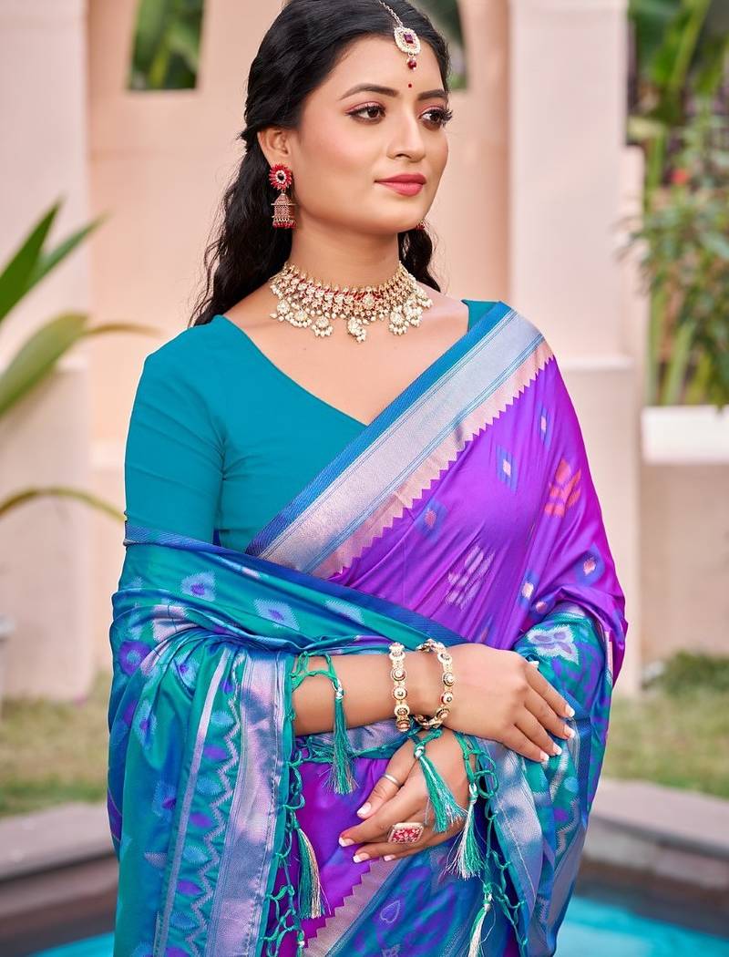 | • | Saree | : | Color- Violet / Fabric- Pochampally |
