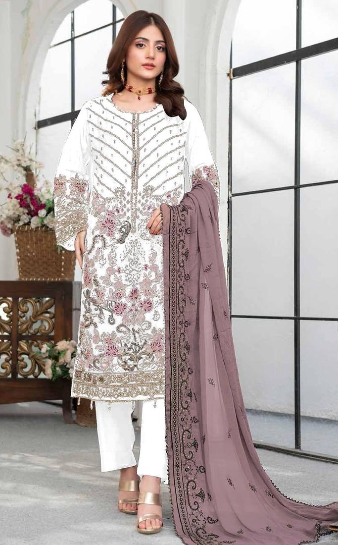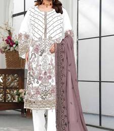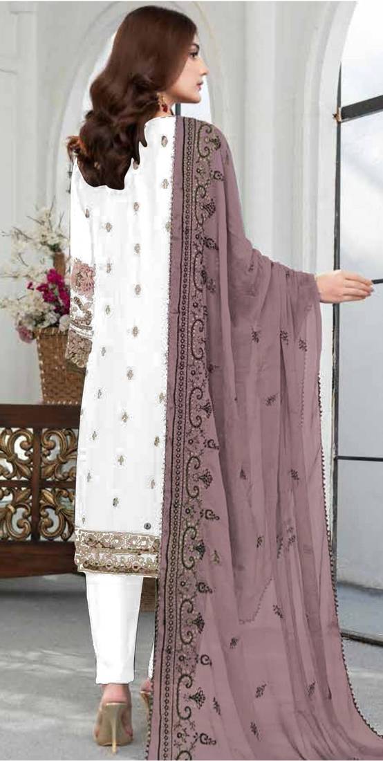 • | Kameez | : | Color- White / Fabric- Faux Georgette |