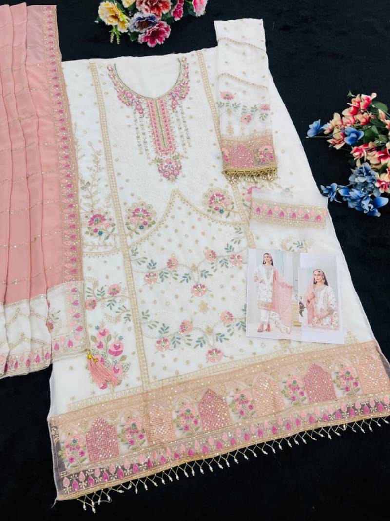 | Product Name | White Fox Georgette Semi Stitched Suit With Embroidery Sequence Work | |