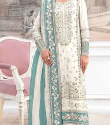 White silk semi stitched suit with embroidery & khatli work